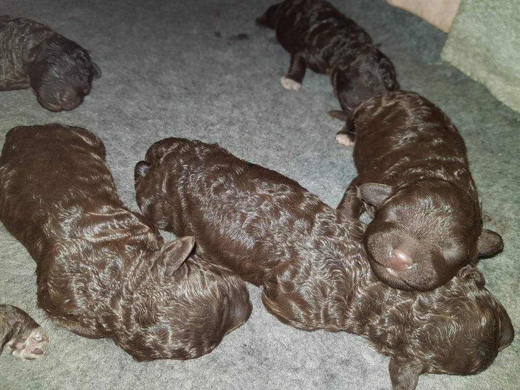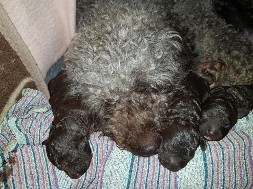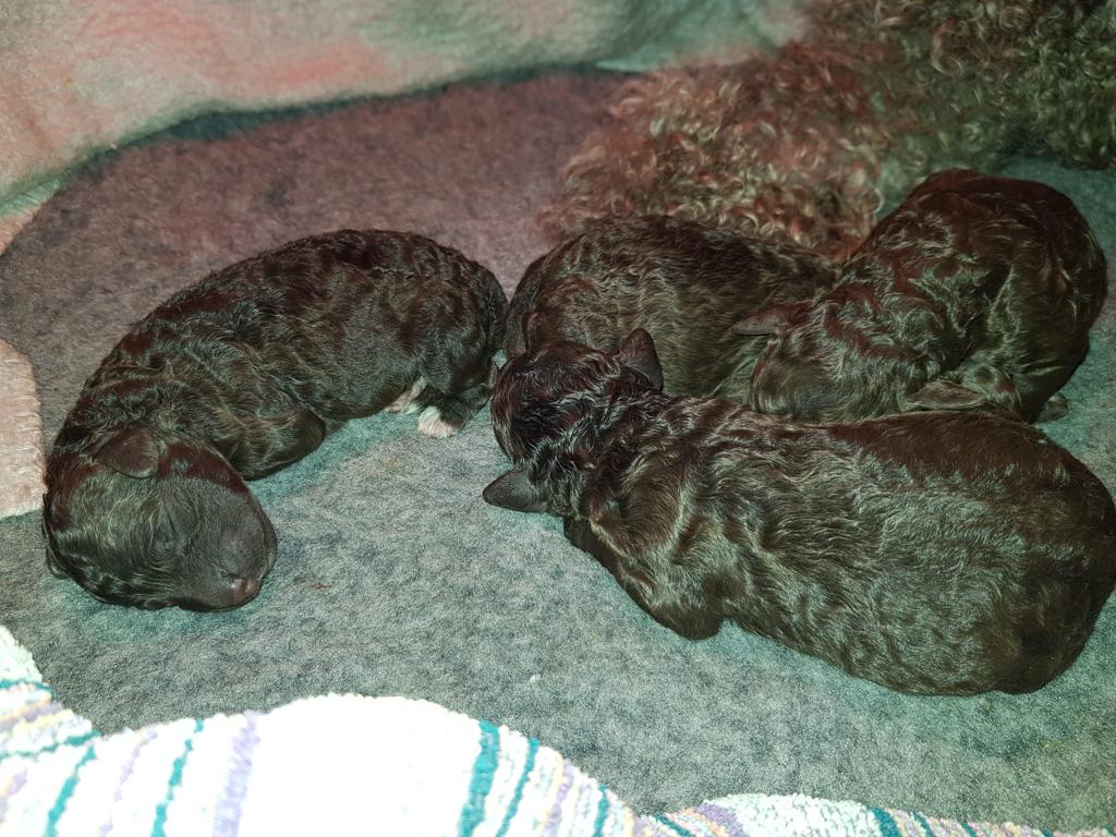 V naší FCI chovatelské stanici Canem Aqua Hispanica jsme na svět přivítali štěňátka plemene Španělský vodní pes (Spanish Water Dog, Hiszpański pies wodny, Španielsky vodný pes, Spanischer Wasserhund, Perro de Agua). Jedná se o Vrh A matky Klotyldy Perro de Agua a otce Checa del Endrinal.
