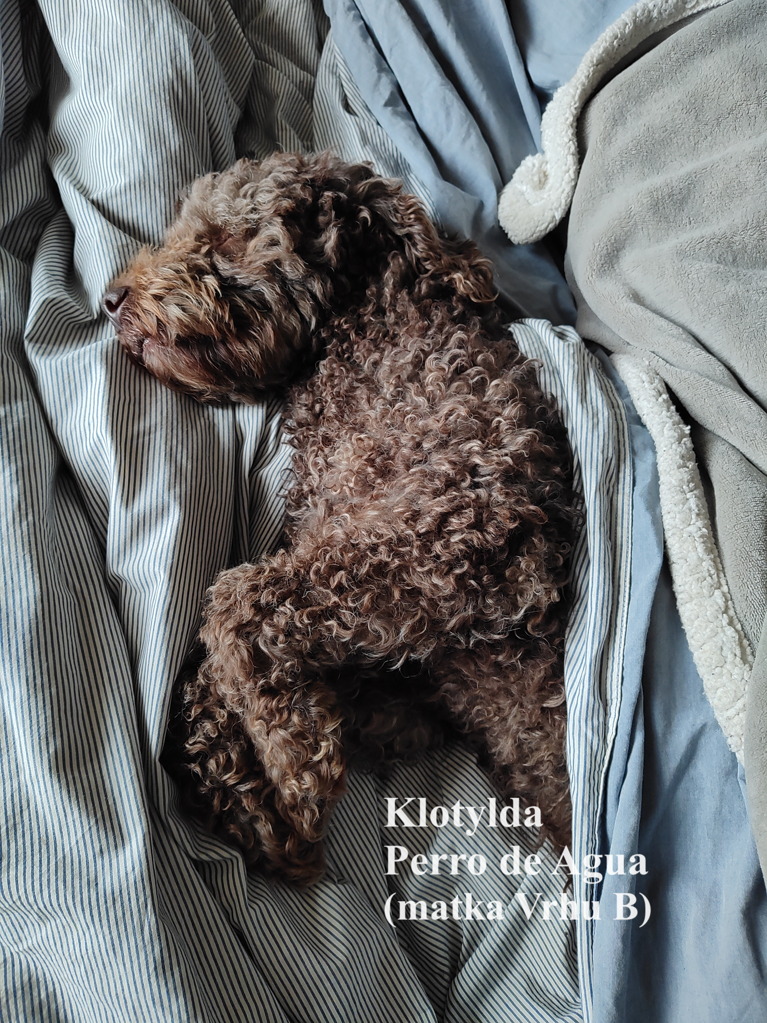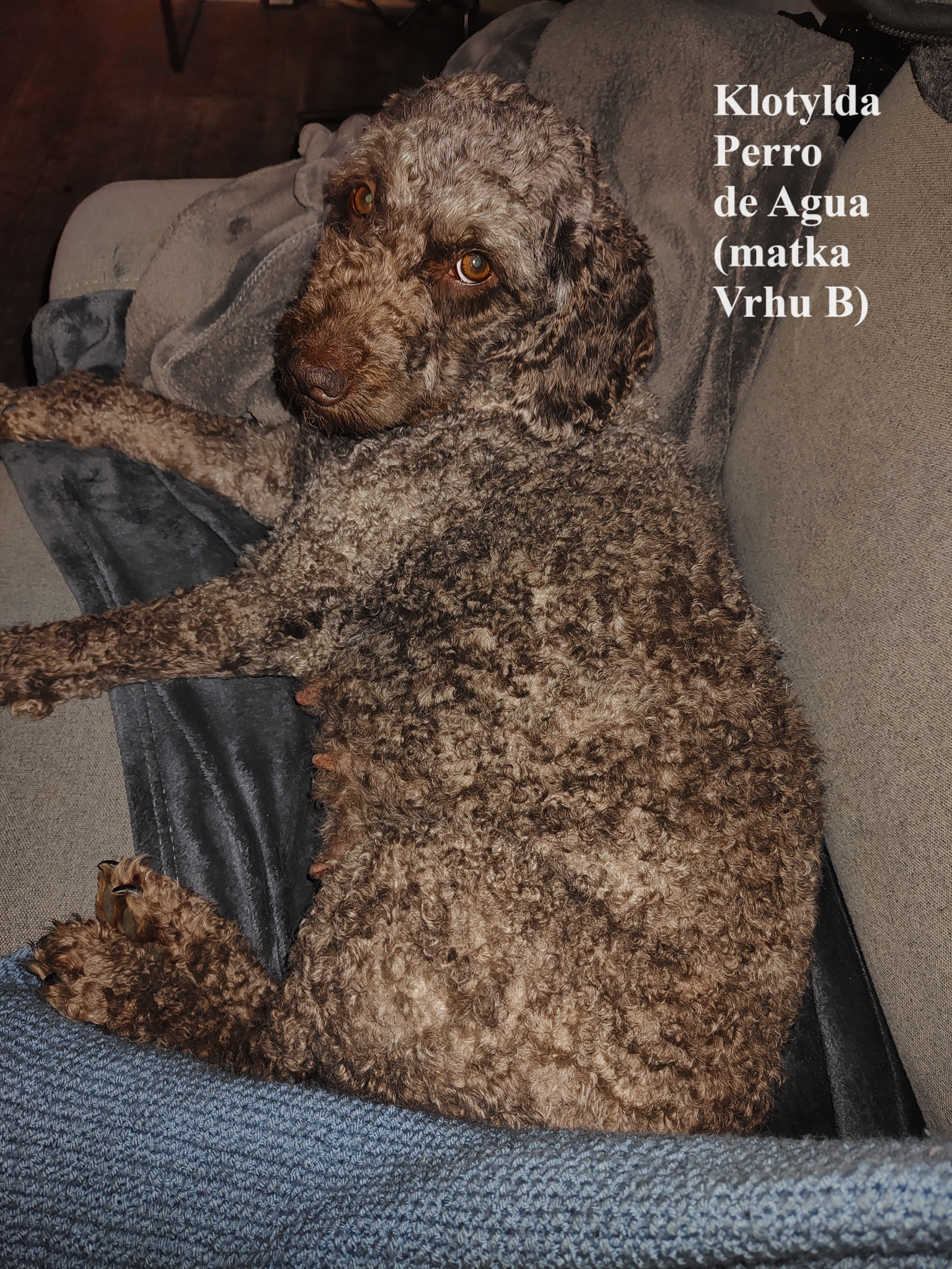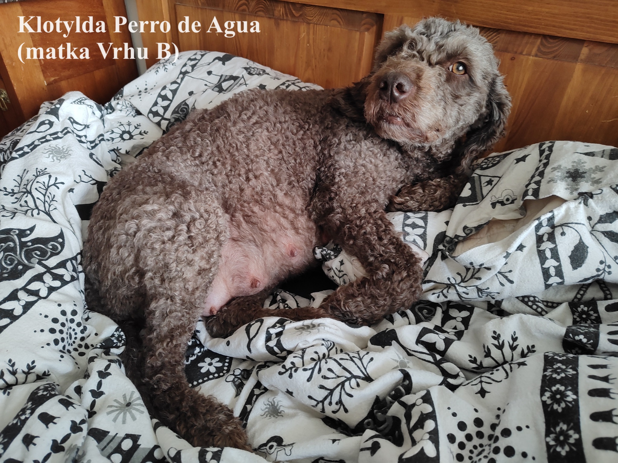 Vrh B plemene Španělský vodní pes se narodil na 27.4.2024. Matka Klotylda Perro de Agua a otec Alberto del Bosque de Pinos.