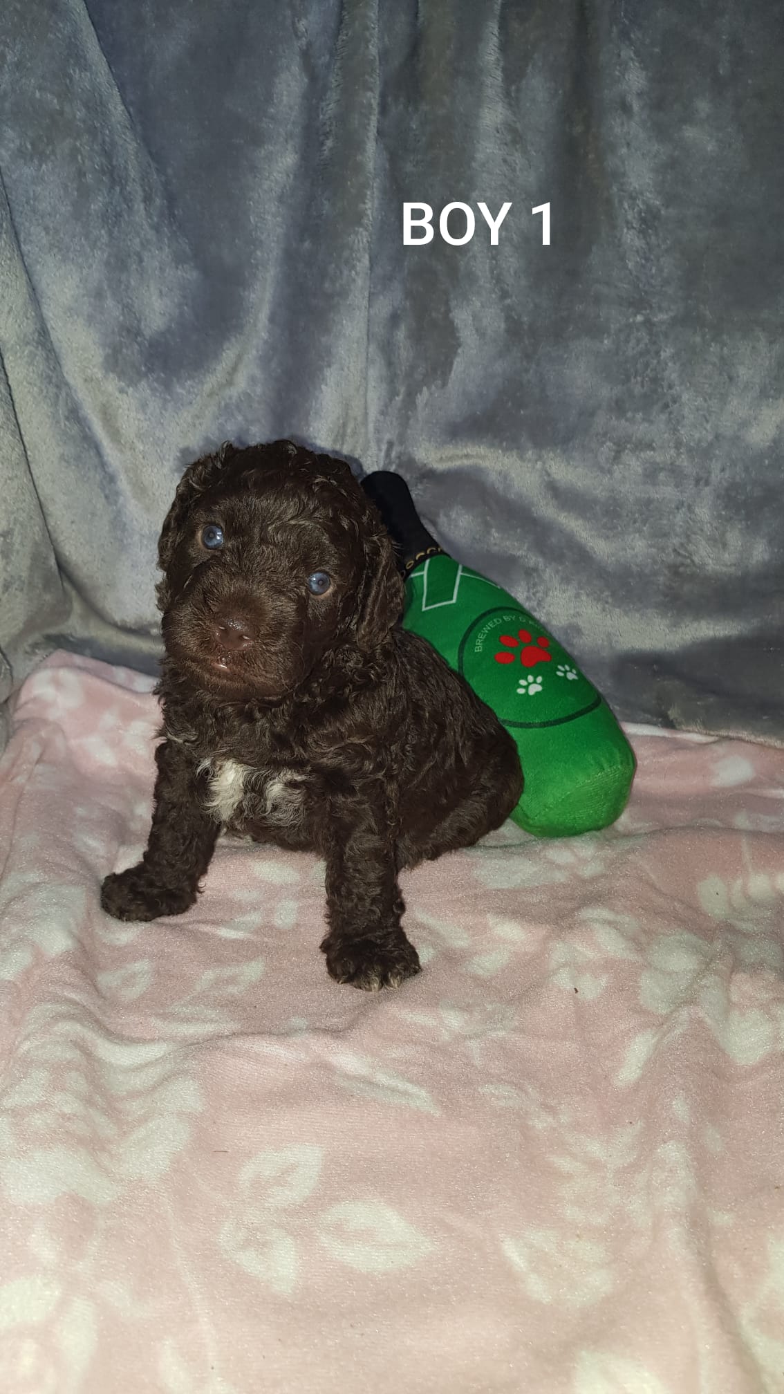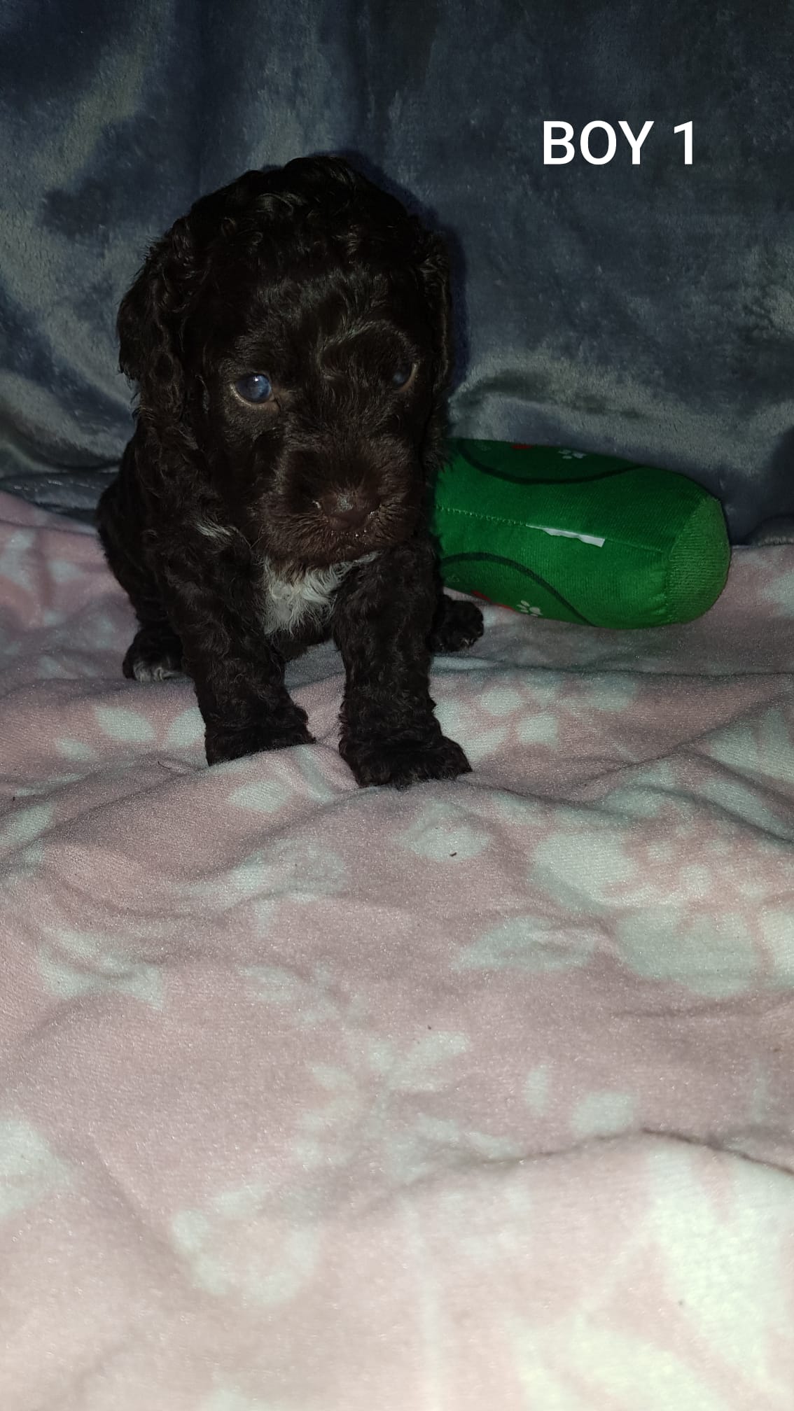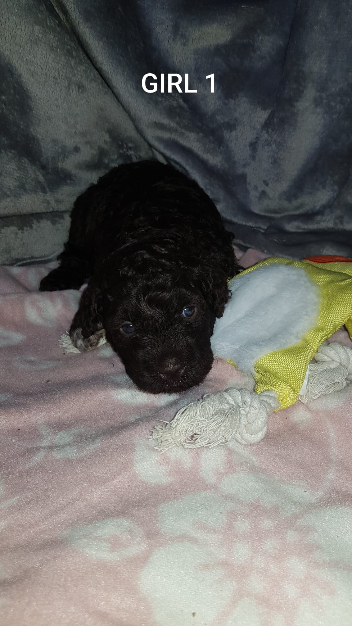 Štěňátka ve věku 24 dní. Rostou jako z vody, pár dní už zkoušejí B.A.R.F. příkrm a každým dnem jsou čilejší a hravější. Jedná se o štěňátka plemene Španělský vodní pes narozená v naší FCI Chovatelské stanici 30. ledna 2023.